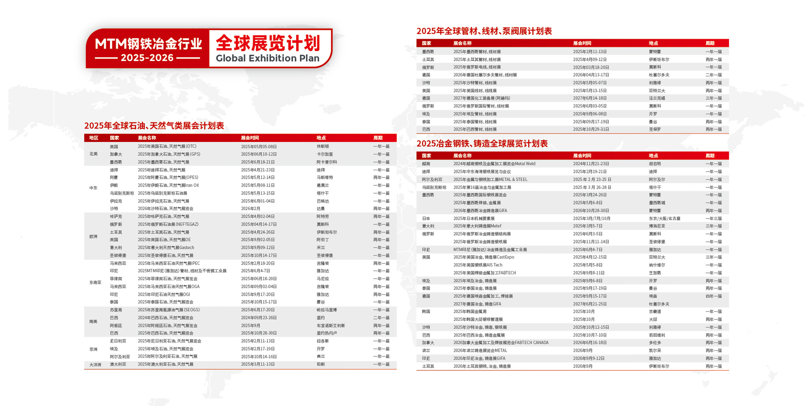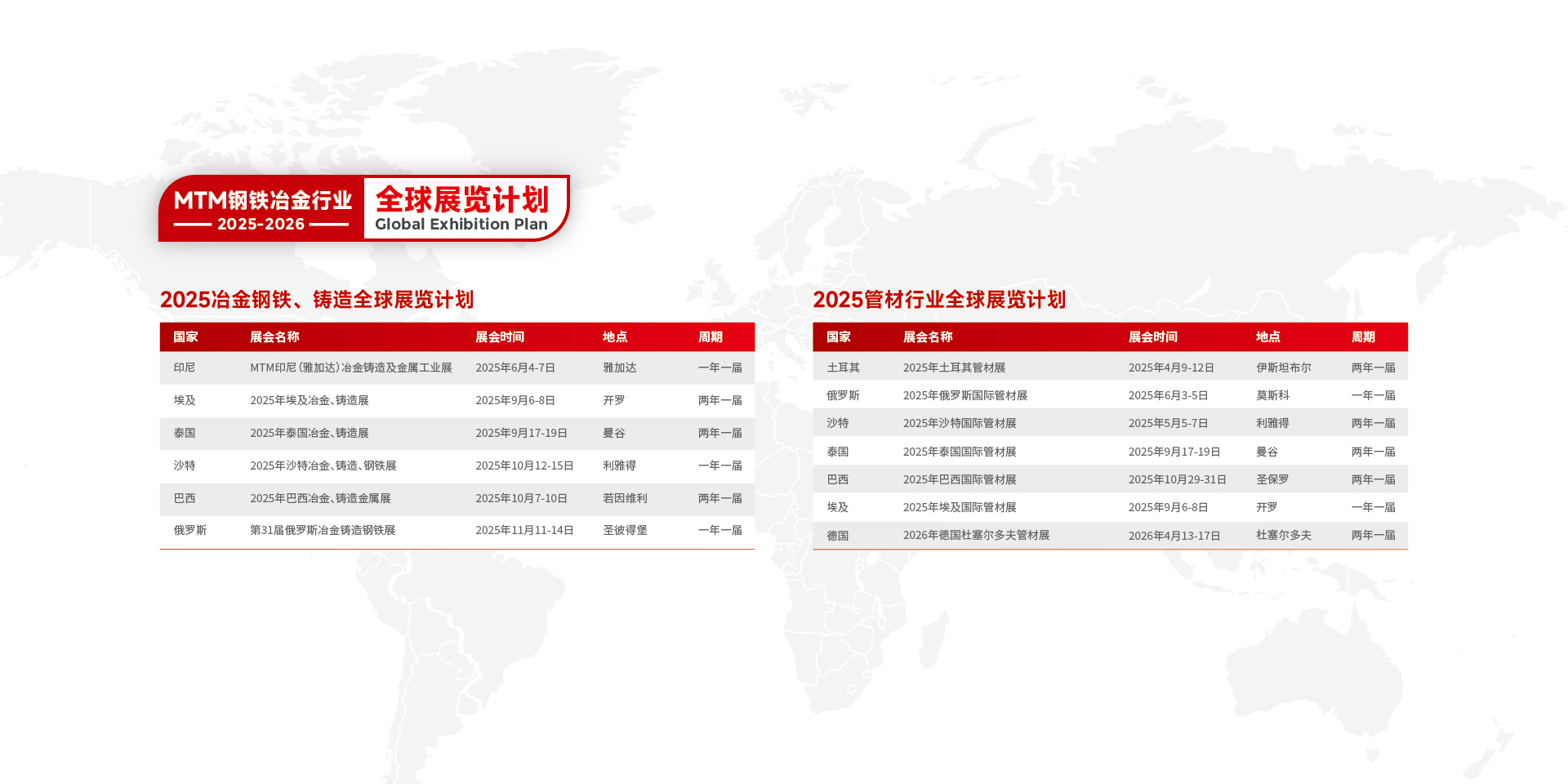 由全聯冶金商會、寶山鋼鐵股份有限公司、中國耐火材料行業協會、中國機械工程學會工業爐分會、中國鋼結構協會鋼管分會、上海市金屬學會、上海鋼管行業協會、天津市線材制品行業協會、上海申仕展覽服務有限公司等單位聯合主辦的“2025金屬世界博覽會”(MTMEXPO)將于2025年12月2日-4日在上海新國際博覽中心盛大舉辦。